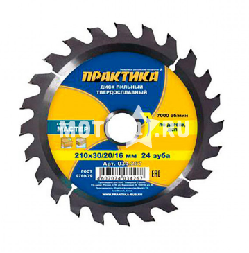 Диск пильный по дереву 210 24зуб.*30/20/16мм "Практика"